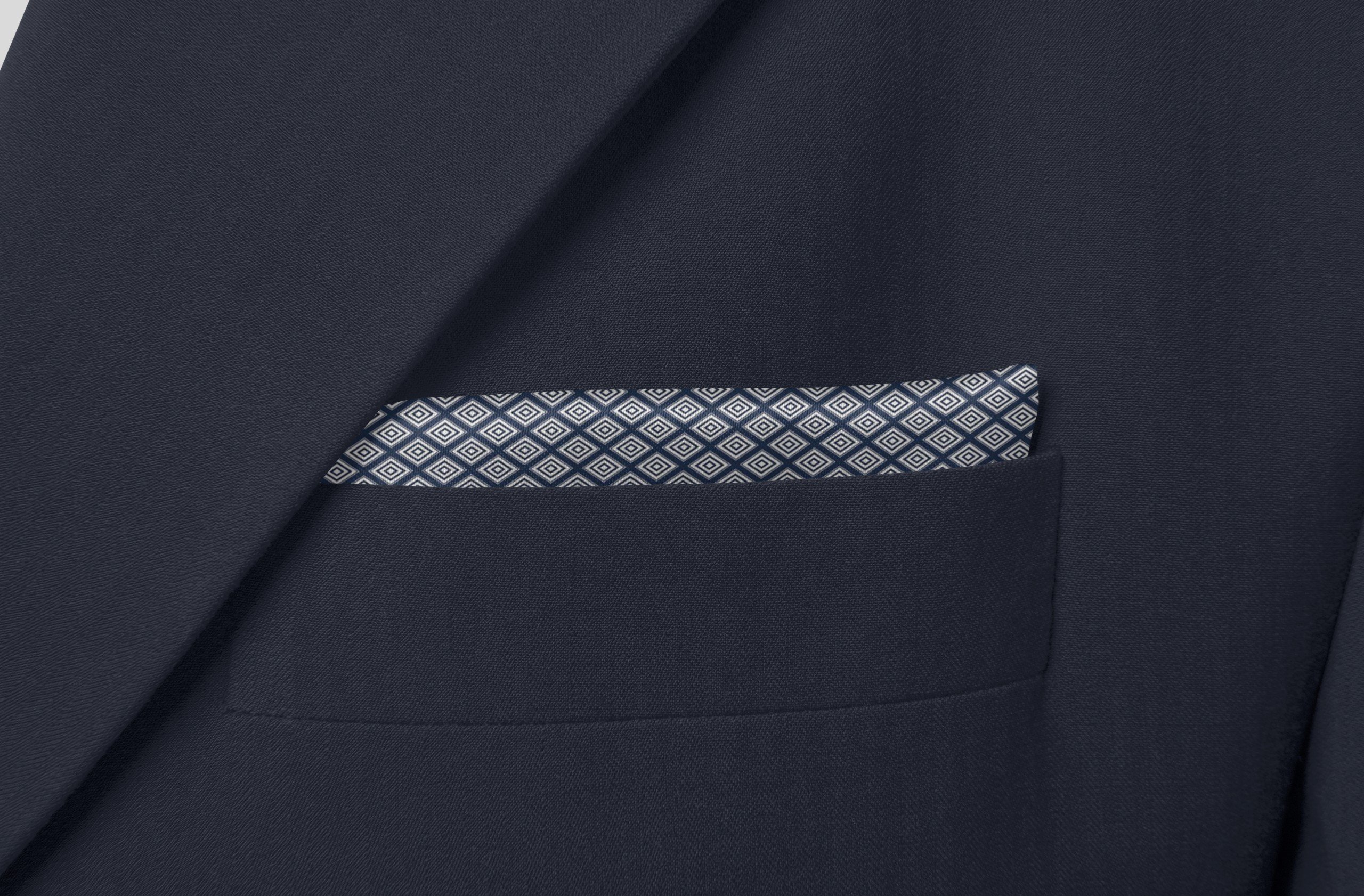 The silk pocket square “Prosper” is inspired by the diamond pattern found in the Nguyen Dynasty’s collection of patterns.